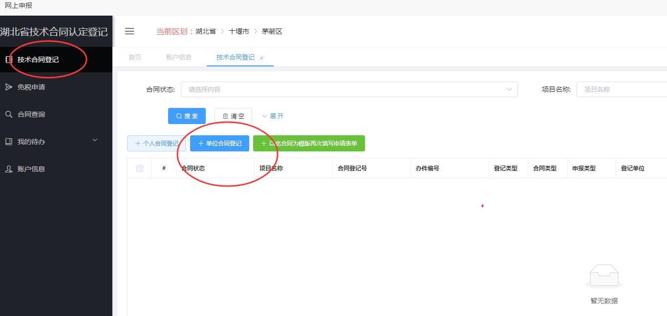湖北政务服务网-技术合同认定登记网址: